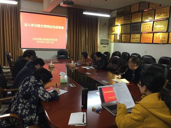 2019年11月15日下午15:00,beats365卫生检验与检疫党支部组织全体党员在beats365办公楼三楼会议室深入学习黄文秀同志先进事迹。活动由党支部书记杨胜园主持,副经理肖锡林、卫生检验与检疫党支部组织全体党员参与活动。