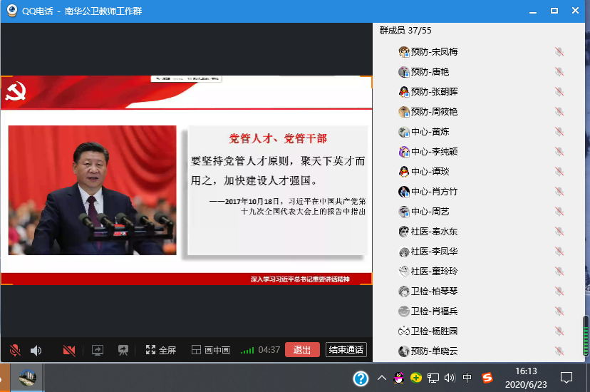 6月23日16:00公司党委采用网络会议开展了beats3652020年第四次教职工理论学习。围绕 “深入学习习近平总书记关于人才及人才工作的重要论述,实施人才强校战略,深化教师队伍建设改革,全面提升教师队伍质量” 学习主题,全院职工认真领会学习。学习由副经理肖锡林主持。