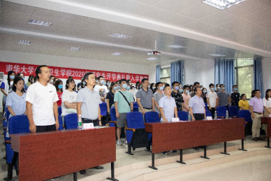 最后,张天成书记结合2020年的新冠疫情,对同学们寄予厚望,希望大家谨记“明德、博学、求是、致远”的校训,成为一个出色的南华公卫人。并向大家提出三点要求:一要海纳百川,厚德载物。大家要把握住短暂的三年时光,努力学习,博大情怀纳百川,耕心厚德明人事。二要与时俱进,勇敢创新。所有医员工都要树立创新的理念,努力培养自己的创新意识、创新精神,积极投身创新实践。三要把握机遇,乐于奉献。同学们作为公共卫生事业的建设者和接班人,应该牢牢抓住顺应时代发展趋势的机会,拓展知识视野,完善知识结构,精通业务知识和专业技能,为未来的从业奠定坚实基础。