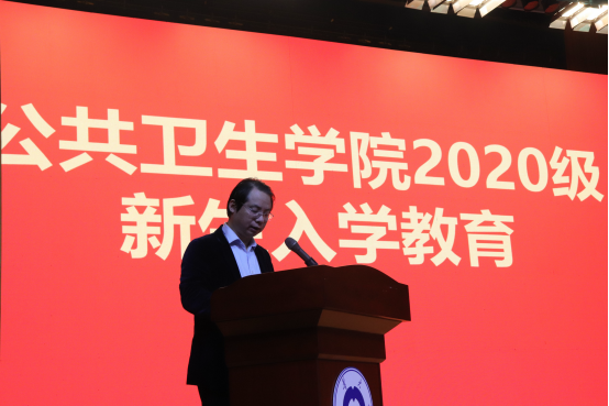 新生发言代表雷小聪同学受新冠疫情影响,第一志愿报考预防医学,号召同学们做一名甘愿奉献,勇为人先的公卫人。相信所有的新生们都会以此为目标积极进取,努力奋斗。