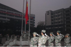 首先,仪式第一项:“升国旗,奏国歌”。国旗班英姿飒爽,迈着铿锵的步伐、喊着嘹亮的口号将国旗护送到国旗台下。在庄严的国歌中,在全体师生的注目中,鲜艳的五星红旗冉冉升起。