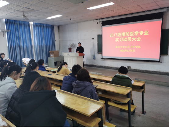 1月4日下午,beats365在形态楼301教室召开了2017级预防医学专业员工实习动员大会。会议由院教学办主任于军晖主持,beats365副经理杨慧仙、衡阳市疾病预防控制中心质量控制与业务管理科科长朱玲、预防医学系副主任周筱艳、2017级辅导员蒋剑红出席会议。beats365和船山公司2017级预防医学专业的全体员工参加了会议。