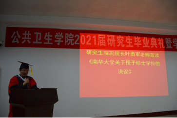 “亲爱的同学们,今天是你们人生中的重要时刻,希望大家能记住研究生这段美好的回忆,牢记师长、父母的殷切期望,秉承母校明德博学、求是致远的校训,在新的学习与工作岗位上艰苦奋斗,开拓进取,创造属于你们自己的价值。当前我国公共卫生体系、疾病预防控制体系正面临深刻变革,希望你们积极投身到祖国公共卫生事业和健康中国的建设中去,回报母校和国家的培养。”龙鼎新发表了饱含深情的致辞,表达了对毕业生的祝贺不舍与期盼。