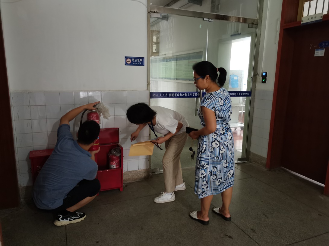 为深入开展党史学习教育,扎实推进“我为群众办实事”实践活动,进一步规范和加强实验室安全管理,确保实验室安全稳定,为建党100周年营造良好环境,6月25日下午,预防医学与放射卫生实验中心对实验室进行了安全检查。检查由实验中心主任杨胜园带队,实验中心党支部书记刘金权以及实验中心副主任程健琳参加了检查。