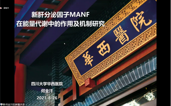 上午10:40,开始了当天的第二场讲座。本场讲座邀请到四川大学华西医院临床药学部副主任何金汉教授,为大家呈现了一场题目为“新肝分泌因子MANF在能量代谢中的作用及机制研究”的精彩讲座。唐志晗教授主持讲座。何教授以肥胖为切入点,从肥胖的成因、脂肪细胞的特性、脂肪细胞的分泌因子等方面,探讨了肥胖和糖尿病的相关性。何教授从能量代谢与脂肪组织角度和肝脏中MANF的基因表达调控角度,阐述了新肝分泌因子MANF在能量代谢中的作用及机制。讲座结束后学员反响热烈,积极提问,何教授一一做出详细解答,为学员未来的研究生阶段学习、选题等都提供了宝贵的建议。