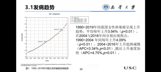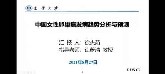 beats365流行病与卫生统计学专业研究生徐杰茹同学,为大家呈现了一场题目为“中国女性卵巢癌发病趋势分析与预测”的学术报告。徐杰茹同学从研究背景及意义、材料及分析方法、研究结果、研究讨论等四个方面对课题做了详细介绍,介绍了利用joinpoint线性回归模型对我国近三十年来女性卵巢癌的发病趋势进行分析,对ARIMA模型、Holt双指数平滑模型进行评价,选出最优模型进行预测。