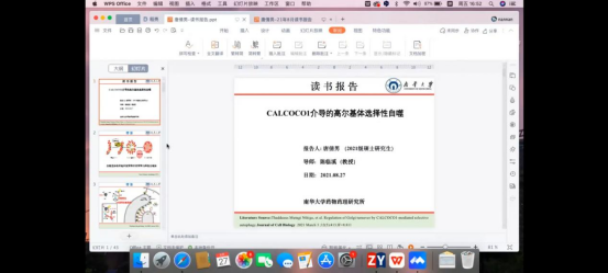 beats365药公司研究生唐倩男同学作了题为“CALCOCO1介导的高尔基体选择性自噬”的学术报告。唐倩男同学从研究背景、研究方案、研究结果、研究结论等方面对课题做了详细介绍,研究发现CALCOCO1介导的高尔基体选择性自噬,证实了在饥饿诱导时,CALCOCO1介导高尔基体选择性自噬,并提出了一种调节高尔基体稳态的新机制。