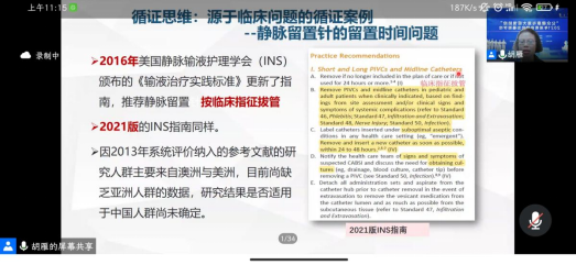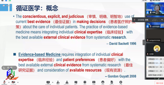 紧接着,上午10:50我们迎来了第三场讲座,由复旦大学护理公司经理胡雁教授对“循证思维的培养”做了一次令人深刻的讲座,廖力教授主持讲座。胡教授讲述循证医学的前世今生及其在整个医学领域中的应用,并针对源于临床问题的循证案例“静脉留置针的时间问题”这一循证思维展开了探讨,讲座结束后,自由提问时间,同学们也不自觉的参与讨论,确实这一场讲座让大家深刻的认识到了循证医学的“魔力”。