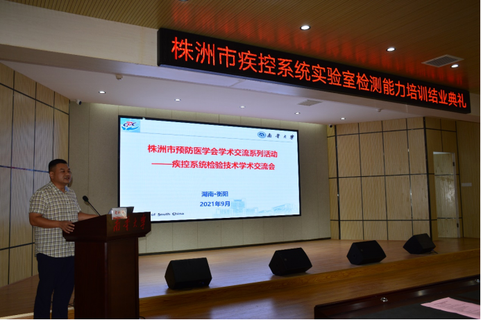 9月16日,株洲市疾控系统实验室检测能力培训结业典礼在公司举行。参加结业典礼的有株洲市疾病预防控制中心副主任李清竹和颜湘峰,微检科科长曹正安,理化检验科科长贺放晴,公司党委书记张天成,副经理杨慧仙和张朝晖,卫生检验与检疫系主任陈丽丽,教学办主任于军晖,参加培训的部分学员,共约50余人。