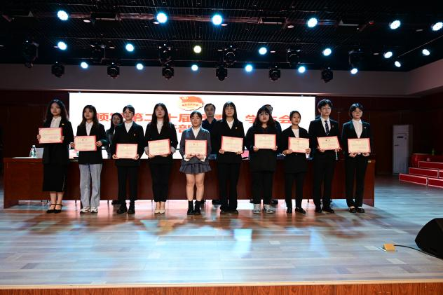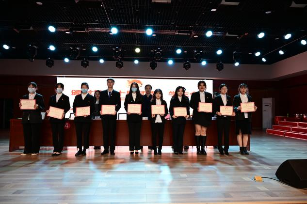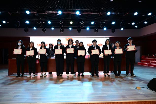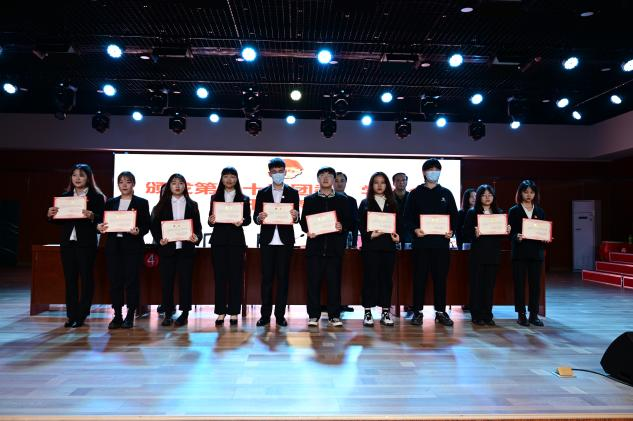 随后,大会进入第二阶段。首先,院团委书记何朝辉宣读了第二十一届团委员工会和学社联干部的名单。紧接着,王超、孙越龙、何朝辉、万值秀为第二十届团学干部颁发聘书。