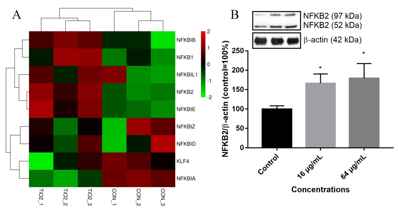 图1.二氧化钛纳米片对平滑肌细胞NFKB2的影响