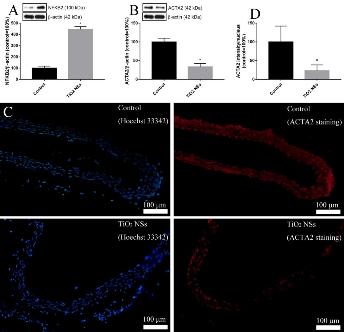 图2.二氧化钛纳米片对小鼠血管NFKB2和ACTA2蛋白的影响