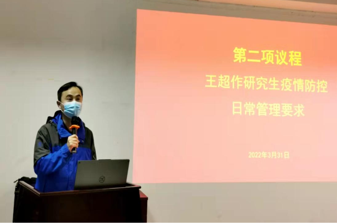 接着,王超对研究生疫情防控日常管理作出要求。要严格离返校审批手续,做到非必要不外出;新冠疫苗要做到应接尽接;要人物同防,做到不网购;强化监测预警,做到日常健康打卡100%,同时加强体温监测、健康码颜色变化监测。王超强调,对于瞒报、谎报、不报的同学,将依法依规依纪追责。beats365的同学们要做好示范与带头作用。