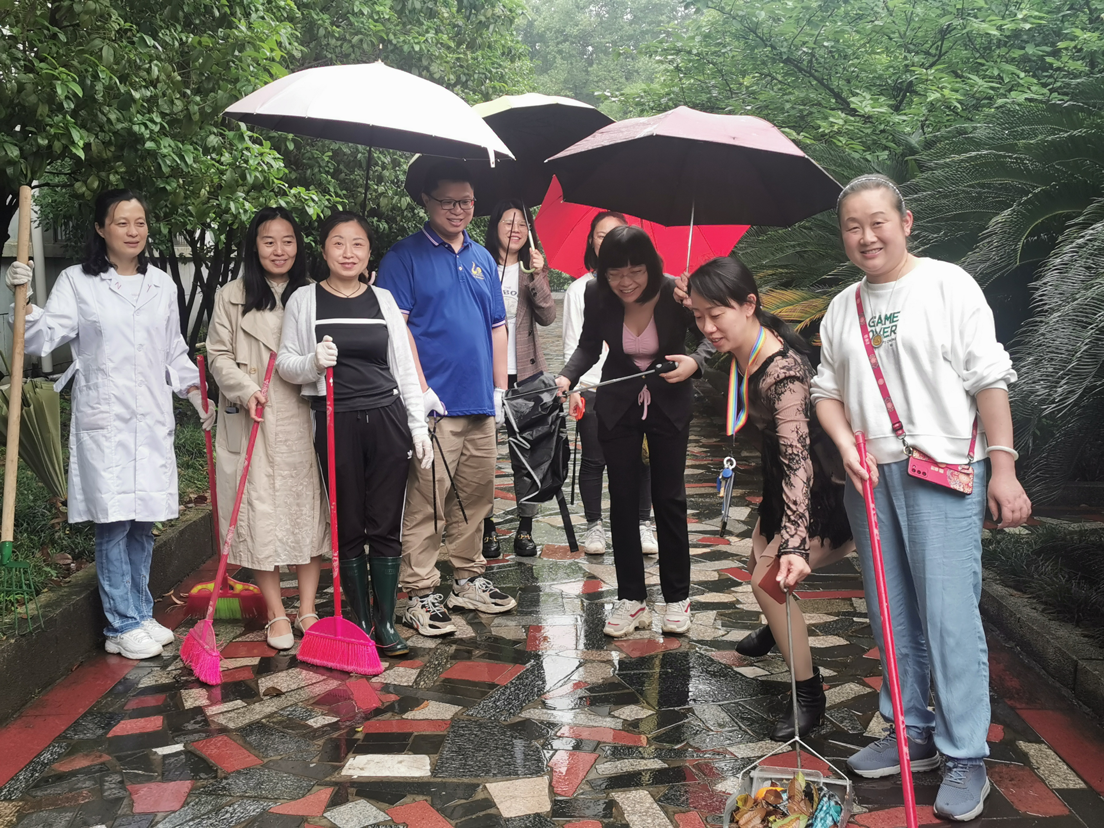 当日蒙蒙的细雨难以阻挡老师和同学们劳动的热情,经过大家一个多小时的努力,包括教职工办公室、教学楼、实验室以及公司辖区的标志性区域在内的卫生死角基本清理完毕。
