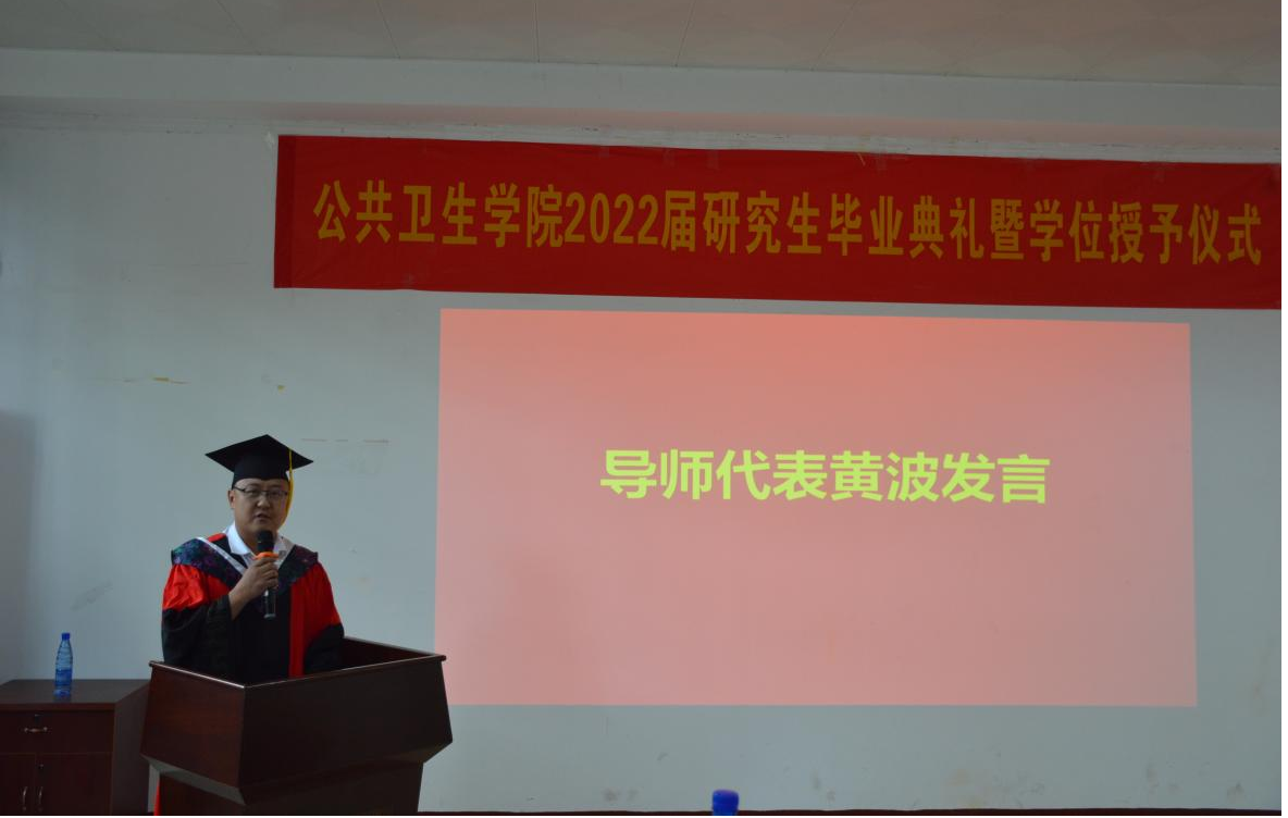 紧接着,导师代表黄波发言。他向顺利完成学业的毕业生们,送上热烈的祝福。希望毕业生们敢于面对挑战,应对问题,要迎难而上,保持自信乐观的心态,将吃苦耐劳的科研品质带到岗位上,在各自的岗位上再接再厉,发光发热。