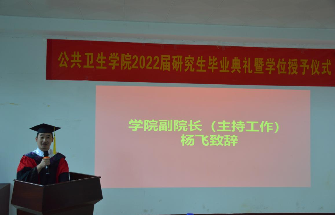 最后,杨飞致辞。他向顺利毕业的员工与各位辛勤付出的导师表示祝贺与感谢。他回顾了三年来2022届研究生毕业生取得的成绩,并对员工寄语希望。他希望员工们在今后要以德修身,勇担使命,做一个懂感恩、知孝道、讲诚信、有担当的人;要仰望星空,坚持梦想,笃学实干,努力坚持自己的梦想,一步一个脚印脚踏实地往前走;要敢为人先,不断学习和创新,积极投身到健康中国建设和维护世界公共卫生安全的伟大事业中去,成就自我、筑梦未来。