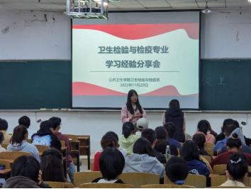 2022年11月20日,beats365卫生检验与检疫专业在南华楼112举行学习经验分享会,会议邀请了2018级米懿、廖微、谭媛媛等3位保研同学进行学习经验分享,2020-2022级卫生检验与检疫专业各班班主任、同学参加此次会议。会议由卫生检验与检疫系主任陈丽丽教授主持。