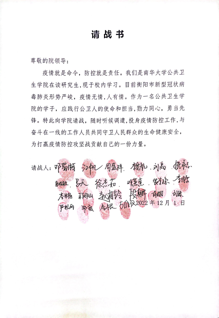 22名研究生请战书