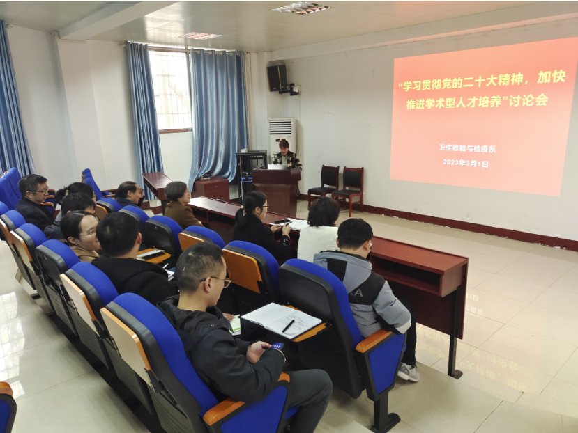 为深入学习贯彻党的二十大精神,落实立德树人根本任务,培养德智体美劳全面发展的社会主义建设者和接班人,提升人才培养质量,办好人民满意的教育,卫生检验与检疫系于2023年3月1日在3教101组织开展了专题讨论会。