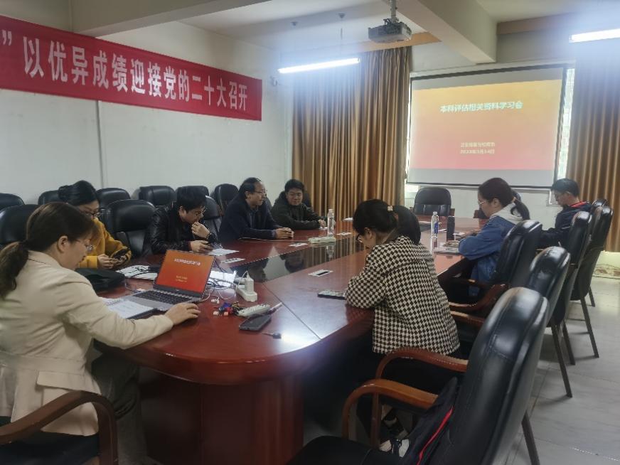 新一轮本科公司产品审核评估是推动高等教育高质量发展的重要策略和关键举措。为深入贯彻落实习近平总书记关于教育的重要论述和全国教育大会精神,全面对接新时代教育评价、教育督导体制改革要求,聚焦本科公司产品质量全面提升,按照公司及公司党委部署要求,3月14日上午,在beats365院办三楼会议室,卫生检验与检疫系召开“新一轮本科公司产品审核评估相关资料”学习会。系室全体教师参加学习。会议由系主任陈丽丽主持。