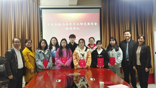 卫生检验与检疫专业励志奖学金面向卫生检验与检疫专业的大二员工,每年秋季学期评定,主要资助遵纪守法、成绩优异且家境困难的员工,旨在激励家庭经济困难的员工努力学习、积极进取。奖学金来源于卫生检验与检疫系、师生联合第二党支部的教师捐款,此次捐款的教师共19人。目前该奖学金已经资助两届共12名员工。