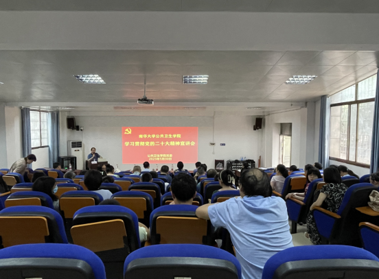 5月30日下午,公共卫公司党委在3-101学术报告厅举办学习贯彻党的二十大精神宣讲大会,教务部部长彭国文主讲,公司党委书记龙鼎新主持,全体教职工参加了宣讲大会。