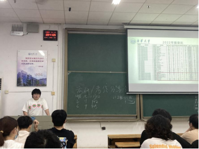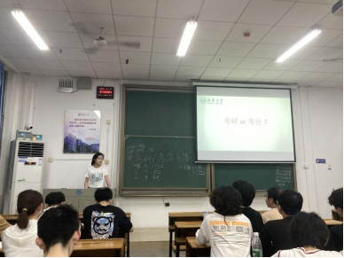 首先是上岸西安交通大学的何芷柔学姐分享考研备考经历,学姐介绍了专硕、学硕的区别,英语政治科目的备考方法与推荐老师,报考信息的来源,包括研究生信息招生网,报考院校官网,卫灿研习社等网上信息来源以及直系学长学姐,并强调在未来备考过程中不能忽视专业课的学习,打好专业基础才是首位。接着由上岸四川大学的姚修元学姐分享备考历程与复试经历,学姐分享了专业课与英语、政治的备考时间线,在认真备考时也需做好应急准备,考研备考中不确定因素诸多,无法避免突发情况发生,如同学姐经历的新增考试科目、考试与疫情放开相撞,学姐因初试考试不理想进而萌生了退却之心,最终也进入了复试名单,学姐以亲身经历告诉我们考研是场持久战,面临突发情况应稳住心态,不到最后一刻决不能放弃,坚持到底,自然会有柳暗花明一刻。接下来由上岸华中科技大学的曹衍学姐分享如何择校与备考经验,学姐从地理位置、学科排名、未来发展三方面综合考虑确定的院校目标,鼓励我们应尽早了解相关信息,并强调了英语能力、科研成果的重要性,无论国家线还是院校都对英语成绩有一定要求,复试时也会考查英语口语能力、询问参加科研情况。考研经验分享最后由上岸了暨南大学的颜羽西学姐作结,学姐从当前就业形势难、专业竞争激烈出发提醒我们应尽早规划好就业或升学计划,考研应全面考查院校信息,包括专业、学费,考试科目,是否保护第一志愿,信息公开度等信息,备考时不要太过依赖网上信息,大部分院校每年分数线波动大,应信赖自己的努力与拼搏,相信乘风破浪自有时,直挂云帆济沧海。