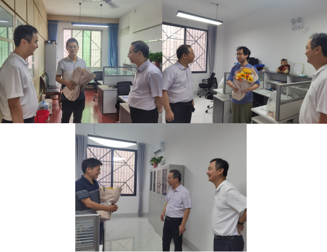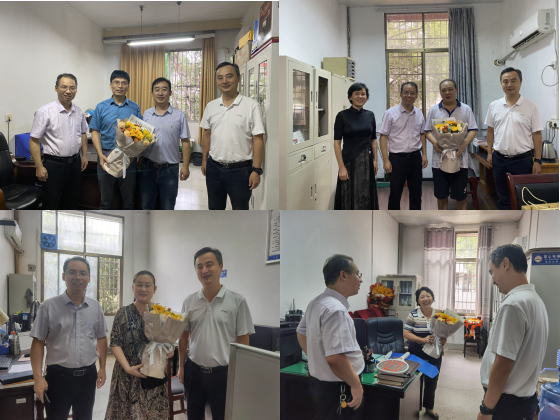 院领导在公卫楼和公司办公楼分别看望慰问了让蔚清、吴成秋、李纯颖、袁秀琴、谢红卫、张天成、陈新、龙斌、龙理良、张朝晖等资深优秀教师代表以及杨飞、牛湘衡、隆曦孜、曹毅等高层次人才。