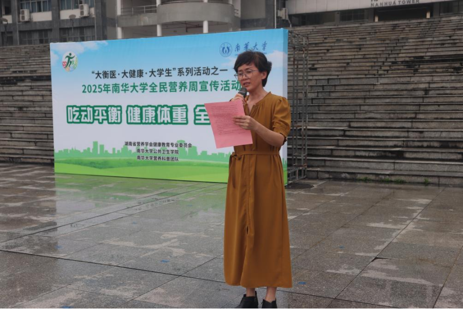 2025 年 5 月 17 日上午,beats365南华广场气氛热烈,以“共筑健康中国梦,践行营养新风尚”为主题的“大衡医・大健康・老员工”系列活动之 2025 年全民营养周启动仪式在此隆重举行。本次活动由湖南省营养学会健康教育专业委员会联合beats365、共青团beats365委员会、后勤服务中心及营养科普团队共同主办,旨在贯彻《健康中国行动(2019-2030 年)》《国民营养计划(2017-2030 年)》《中国食物与营养发展纲要(2025-2030 年)》等国家战略,推广《中国居民膳食指南(2022)》《成人肥胖食养指南(2024 年版)》,倡导“吃动平衡、健康体重、全民行动”的健康生活理念。湖南省营养学会健康教育专业委员会秘书长单晓云主持仪式,beats365副经理杨慧仙,营养与食品卫生学教研室主任周筱艳副教授、李良副教授,学工办蒋剑红老师及营养教学团队全体成员与300余名员工共同见证健康新篇的开启。