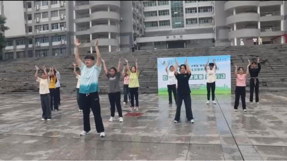 随后,营养科普团队成员吴宇星同学带领现场师生展示《全民营养操》。节奏明快的音乐中,兼具科学性与趣味性的动作设计,将“吃动平衡”的理念转化为直观的肢体语言,生动展现了运动与营养协同促进健康的核心理念,赢得现场阵阵掌声。