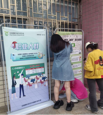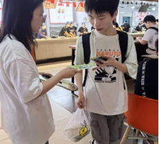 团队成员们还将营养知识折页和印有膳食宝塔及健康饮食标语的扇子向过往师生分发,热情交流互动,并耐心解答大家关于营养健康的各种疑问。从如何选择健康食品到如何根据自身情况调整饮食结构,成员们凭借扎实的专业知识,用通俗易懂的语言向师生传递营养知识。一名大二员工笑着表示:“扇子正好夏天用,还能随时提醒自己别贪奶茶。”