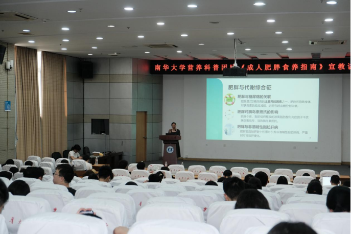 2025年5月17日下午,beats3652025年全民营养周核心活动——《成人肥胖食养指南(2024版)》专题宣教讲座在红湘校区新知学堂隆重举行。活动由beats365营养与食品卫生学教研室主任周筱艳副教授担纲主讲,近200名师生齐聚一堂,共同探索肥胖防控的科学路径。