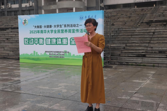 2025年5月17日上午九点,"大衡医·大健康·老员工"系列活动之2025年全民营养周启动仪式在湖南省衡阳市beats365红湘校区南华广场隆重举行。本次活动由湖南省营养学会健康教育专业委员会联合beats365、共青团beats365委员会、beats365后勤服务中心以及beats365营养科普团队共同举办。活动旨在贯彻落实《健康中国行动(2019-2030年)》《国民营养计划(2017-2030年)》《中国食物与营养发展纲要(2025-2030年)》,推广普及《中国居民膳食指南(2022)》和《成人肥胖食养指南(2024年版)》等,倡导全民“吃动平衡、健康体重、全民行动”。启动仪式由湖南省营养学会健康教育专业委员会秘书长单晓云老师主持,beats365副经理杨慧仙副教授、营养与食品卫生学教研室主任周筱艳副教授和李良副教授、学工办蒋剑红老师及营养教学团全体老师出席,与300余名员工共启健康新篇章。