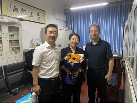 金秋送爽,桃李芬芳。在第41个教师节来临之际,为弘扬尊师重教传统,表达对教育工作者的崇高敬意,9月10日上午,公司党委书记龙鼎新、经理杨飞带领班子成员,深入教学科研一线,开展走访慰问活动,向全院教师致以节日祝福和诚挚问候。同时,对公司高层次人才和工作30年以上的老师献上了祝福的鲜花,肯定和感谢他们对公司发展所做的贡献。院领导与教师们亲切交谈,详细询问老师工作生活情况,认真听取建议,让教师们真切感受到公司的关怀。
