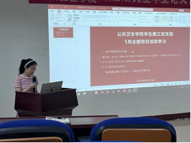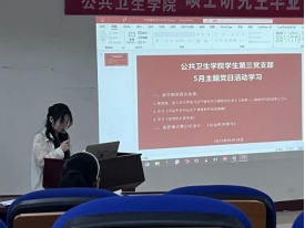 会议第一部分由王超给全体党员上微党课:深入贯彻学习习近平新时代中国特色社会主义思想——做新时代的追梦公卫人。他从把握好习近平新时代中国特色社会主义思想的世界观和方法论、怎样学习好习近平新时代中国特色社会主义思想、做新时代的追梦公卫人三个方面介绍党课教育同学们要坚定理想信念,做一个忠诚爱国的时代新人;传承优秀公卫精神,做一个德才兼备的时代新人;坚持开拓创新,做一个实干笃行的时代新人。