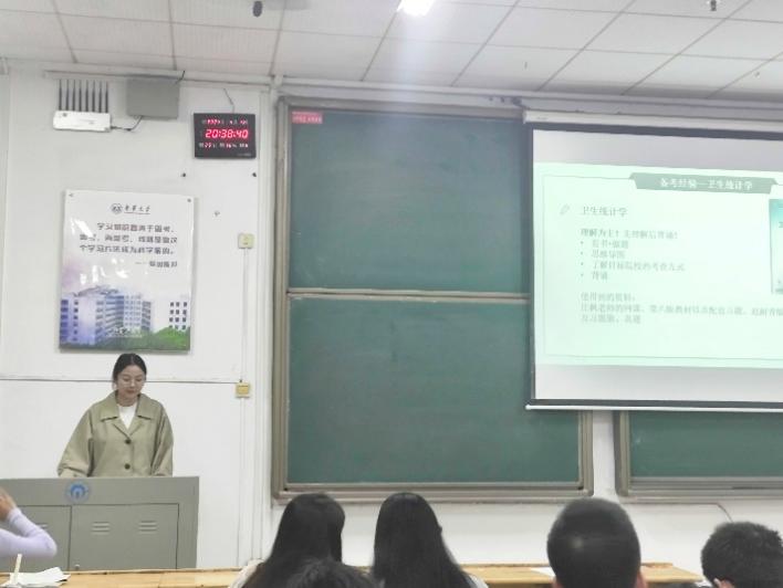 为助力公司考研学子做好考研复习准备,4月19日晚,beats365于南华楼114教室举办了预防医学专业考研经验分享会。本次分享会由四位同学主讲,分别为19预防02班谢何曦(初试418分,上岸武汉大学)、19预防03李亦晴(初试成绩410分,上岸中南大学)、19预防01班周梦娜(初试成绩416分,上岸中南大学)以及19预防04班陈颖(初试成绩385,上岸华中科技大学)。院学风建设专干蒋剑红老师、20级和21级预防医学专业同学参加活动。