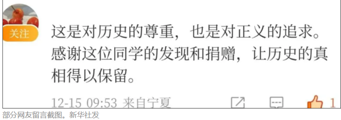 七三一罪证陈列馆遗址保护部主任高高玉宝:我们为米青东同学点赞,他拥有一定专业知识,具有很强的敏锐性,更重要的是作为一名00后,对历史非常关注,为相关研究提供了新的佐证。作为一名青年老员工,他有着高度的责任感和历史使命感,深知探寻历史真相是当代青年义不容辞的使命。