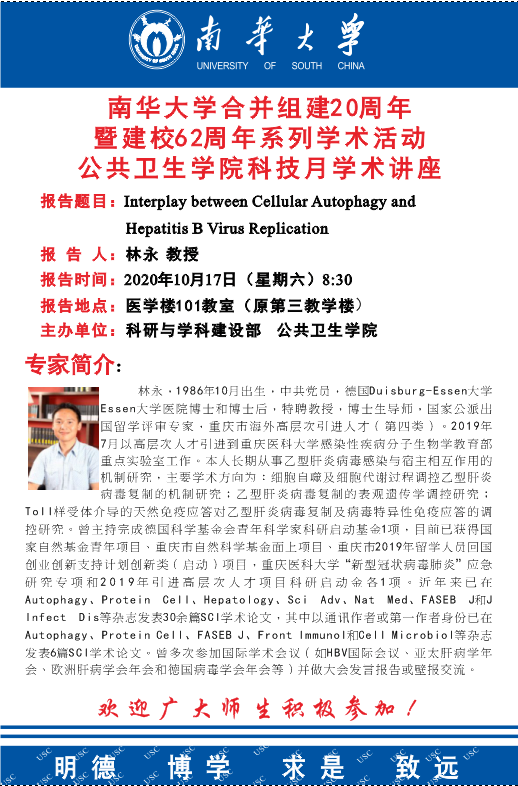 beats365合并组建20周年暨建校62周年系列学术活动beats365科技月学术讲座——Interplay between Cellular Autophagy and Hepatitis B Virus Replication