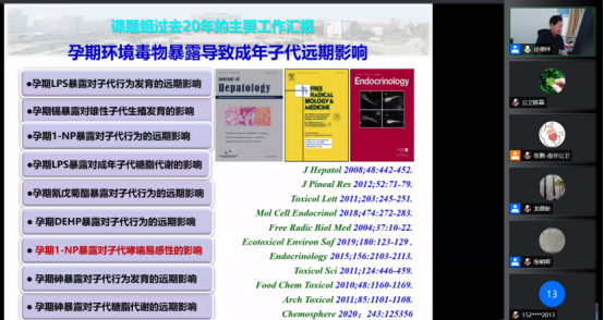 上午10:00,开始了当天的第二场讲座。本场讲座邀请到安徽医科大学beats365副经理徐德祥教授,为大家呈现了一场题目为“生殖发育毒理学过去进展的回顾与未来研究的几点思考”的精彩讲座。本场讲座由公司beats365经理龙鼎新教授主持。徐德祥教授首先对生殖发育毒理学过去20年研究进展进行了回顾;其次,对本课题组过去20年的主要工作进行了阐述;然后重点介绍了1-硝基芘损害胎盘和胎儿发育的实验证据,详细分享了5个研究内容;最后讲述了自己对未来研究的一些思考。徐德祥教授的讲座内容丰富,我们收获颇丰。