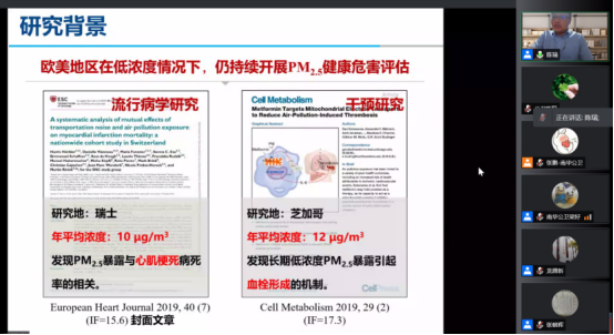 下午15:00,迎来了第三场讲座。本场讲座邀请到青岛大学beats365经理郑玉新教授,他为大家带来了一场关于“交通尾气暴露的生物标志物研究”的讲座。本场讲座由公司beats365经理龙鼎新教授主持。郑玉新教授的讲座内容分为三部分:第一:对新的生物标志物的探索,例如:肺巨噬细胞碳负荷水平、基于肺HRCT影响数据的肺损伤指标;第二:生物标志物的应用;第三:连接人群研究和体外研究。最后,郑教授进行了网上答疑,让我们受益匪浅。