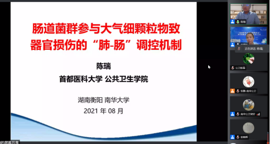 上午8:30,首都医科大学beats365经理陈瑞教授为大家带来了一场关于“肠道菌群参与大气细颗粒物致器官损伤的“肺-肠”调控机制”的讲座,本场讲座由公司beats365经理龙鼎新教授主持。陈瑞教授首先介绍了PM2.5在全球范围内的研究现状,然后对以下四个方面进行了详细介绍:第一,PM2.5暴露引起肺部、系统及结肠炎症;第二,乙酸参与调控PM2.5引起的肺部炎症和系统炎症;第三,乙酸促进炎性浸润的分子机制;第四,益生菌干预研究。陈瑞教授的讲座深入浅出,非常精彩,让我们受益匪浅。