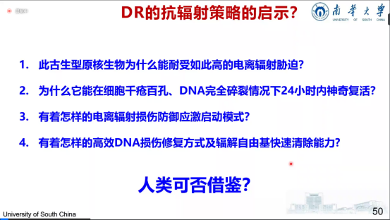 上午10:10,开始了当天的第二场讲座。本场讲座邀请到beats365何淑雅教授,为大家呈现了一场题目为“电离辐射基础及极端生物辐射抗性研究进展”的精彩讲座。龙鼎新经理主持讲座。何教授从电离辐射基本知识、电离辐射损伤机制与生物效应、电离辐射的双刃剑作用、辐射创造生命、DR辐射损伤与修复机制研究等五个方面对电离辐射相关知识与研究进行了深度的探讨和详细解读,并提及了利用电离辐射来对医疗防护服进行消毒处理以及利用低剂量电离辐射来治疗新冠病毒患者的最新研究进展。讲座结束后学员反响热烈,积极提问,何教授一一做出详细解答,为学员未来的研究生阶段学习、选题等都提供了宝贵的建议。