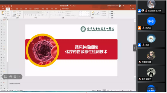 下午16:30,开始了当天的第四场讲座。本场讲座邀请到beats365附属第一医院药学部主任阳波教授,易岚教授主持讲座。阳教授作了题为“肿瘤细胞化疗药物敏感性检测技术”的专题讲座。阳教授首先比较了肿瘤在世界范围内的患病现状,随后介绍了化疗药物治疗方案及两大障碍,CTC的应用、需攻克的两大难点及其发展史的重要事件。讲座结束后学员反响热烈,阳教授针对学员的提问一一解答,使师生收益颇丰。