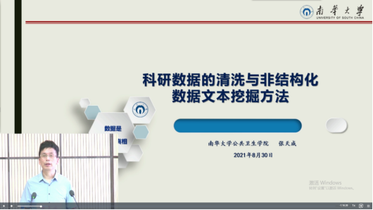 2021年8月30日,2021年湖南省“公众健康与重大疫情防控”研究生暑期公司教学“最后一课”顺利进行。beats365公司党委书记张天成于医研楼一楼学术报告厅作了题为“科研数据的清洗与非结构性数据文本挖掘方法”的专题讲座,讲座由beats365经理龙鼎新主持。本次讲座采用线上直播的方式进行。