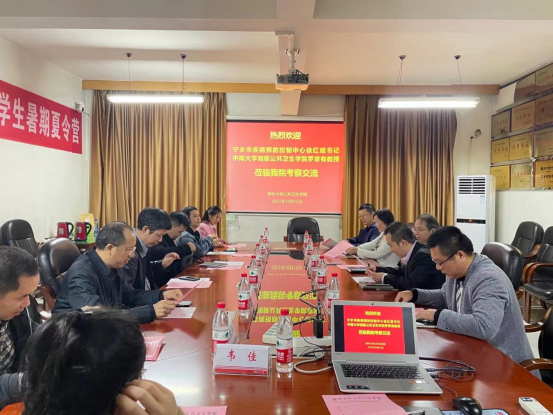 2021年10月15日下午,宁乡市疾控中心主任徐红斌、副主任彭智勇、急传科科长张鹏、业务办主任廖东宁、检验科科长黄芬、中南大学湘雅beats365教授罗家有、韦佳博士等一行7人到访公司并进行交流座谈。座谈会在beats365办公楼三楼会议室举行,公司党委书记龙鼎新、副经理杨飞、杨慧仙、肖锡林、张朝晖和部分系主任及老师代表出席,杨飞副经理主持座谈会。