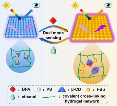 二维光子晶体双交联超分子水凝胶用于双酚A双信号检测的原理图
