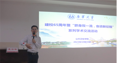 首先,曾强以“饮用水消毒副产物致男性精液质量降低的中国人群证据”为题,从全球男性精液质量状况、环境因素影响、消毒副产物情况、血液THMs、尿液TCAA与男性精液质量关系、研究成果与应用等五个方面,为大家介绍了目前饮用水消毒副产物对男性精液质量降低的中国人群证据。作为2004级beats365卫生检验专业毕业员工,曾强还分享了从南华到华科的奋斗历程,激励同学们保持科研热情。在科研工作中,善于思考、勤奋做事、加强科研能力锻炼。