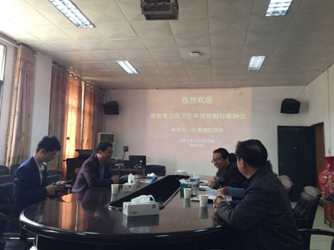 2018年3月14日下午,湖南省公共卫生环境检测行业协会宋映陶会长一行3人造访公司,就湖南省亿美有害物质检测有限公司与公司开展校企合作进行洽谈。洽谈会由公卫公司经理龙鼎新教授主持,副经理杨慧仙、卫生检验与检疫系教授吕昌银、陈丽丽、杨胜园出席会议。